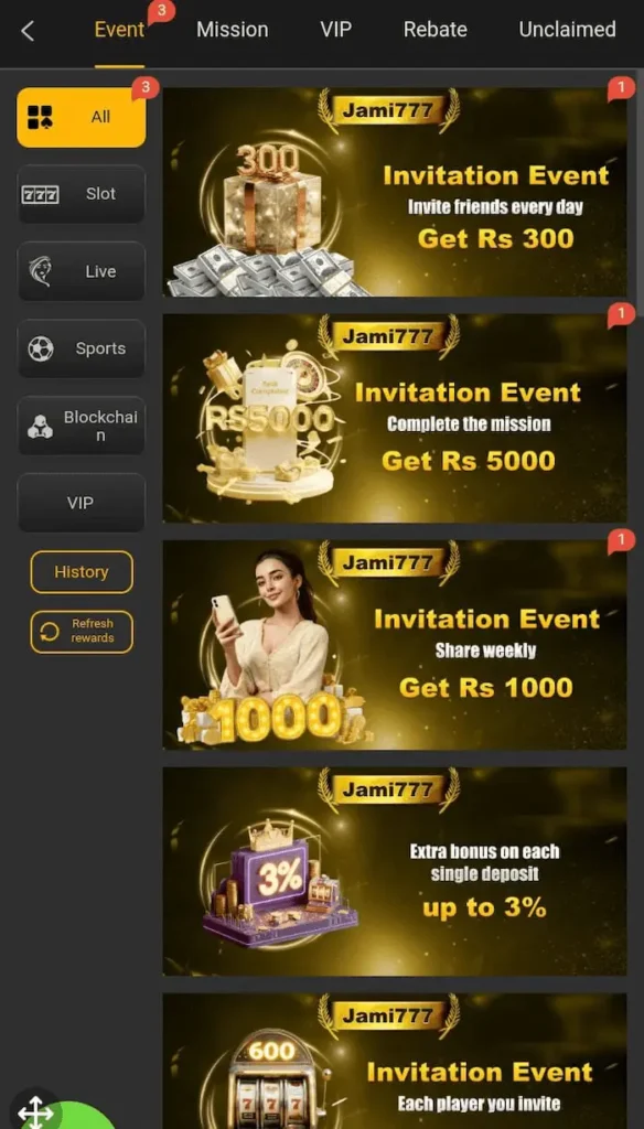 Jami777 Game has a clean and simple layout. Everything is labeled clearly so players can find games, bonuses and settings quickly.